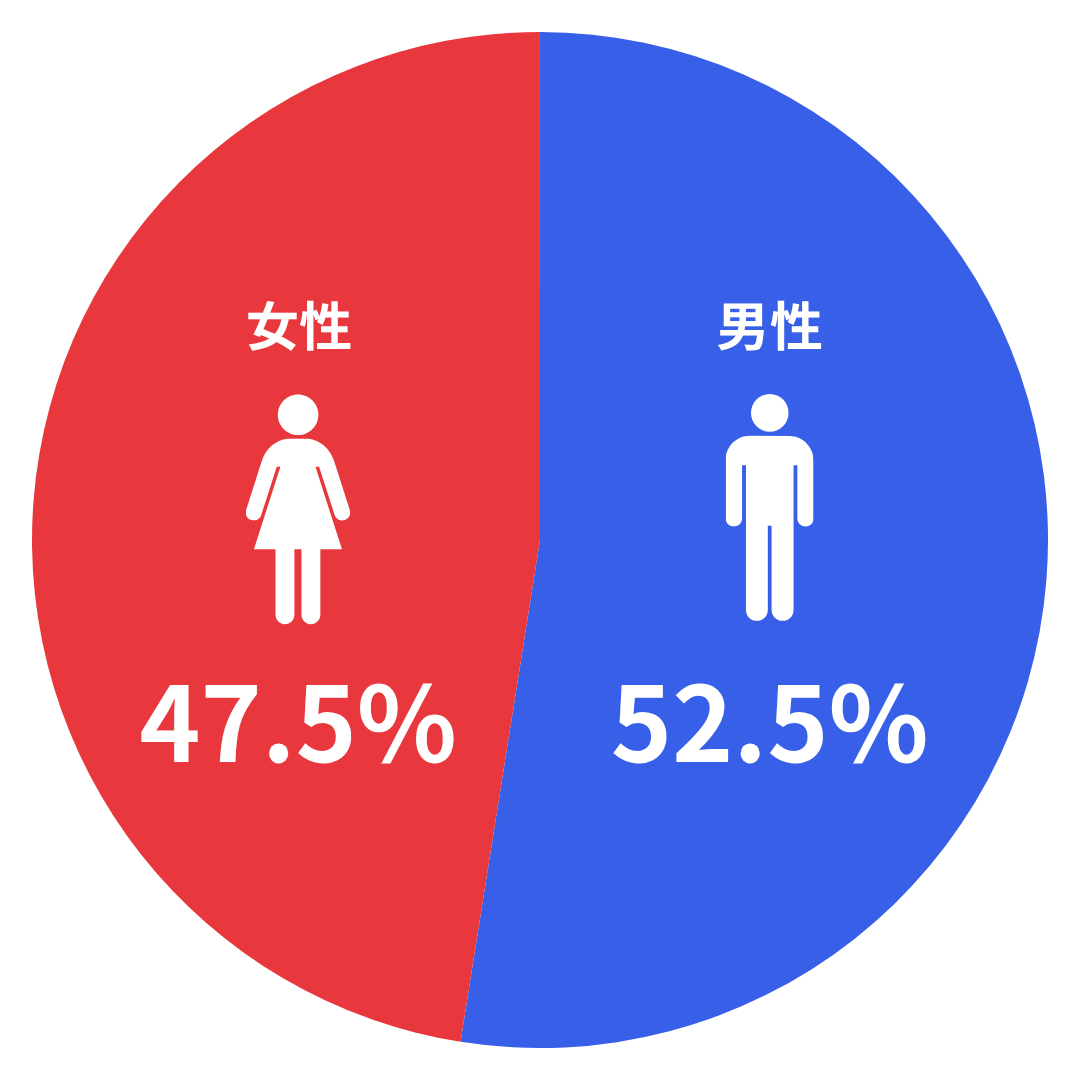 IBJについて 業界最大級のネットワークで理想の出会いを 👑 会員数 No.1 登録会員数 102,302名 (先月末時点) 月間新規入会者数 6,356名 (先月実績) 全国最大級の会員数を誇る IBJ(日本結婚相談所連盟)では、10万人以上の会員の中から、24時間いつでも効率的に理想のお相手を見つけることが可能です。IBJ正規加盟店であるうめマリ(Ume marriage)では、多くの出会いのチャンスをご提供いたします。成婚=交際ではなく、成婚=婚約を目指せます! 数字で見るIBJデータ 会員の男女比 男女比に大きな差がないため、 男女ともに偏りなくお相手探しができます。 最終学歴 男性会員の職業割合 ※会員構成割合が0.5%に満たない職業は省略 1年以内に本気で結婚したいあなたへ。 うめマリが『幸せな結婚』まで三人四脚で親身にサポート致します! 無料カウンセリングを予約する